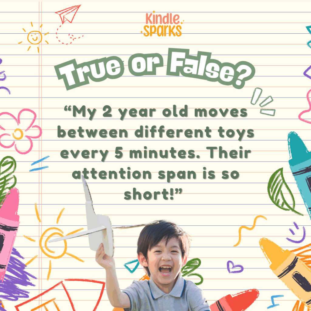 Your child’s attention span should be about 2 to 3 minutes for every year of age. Attention spans by age:–